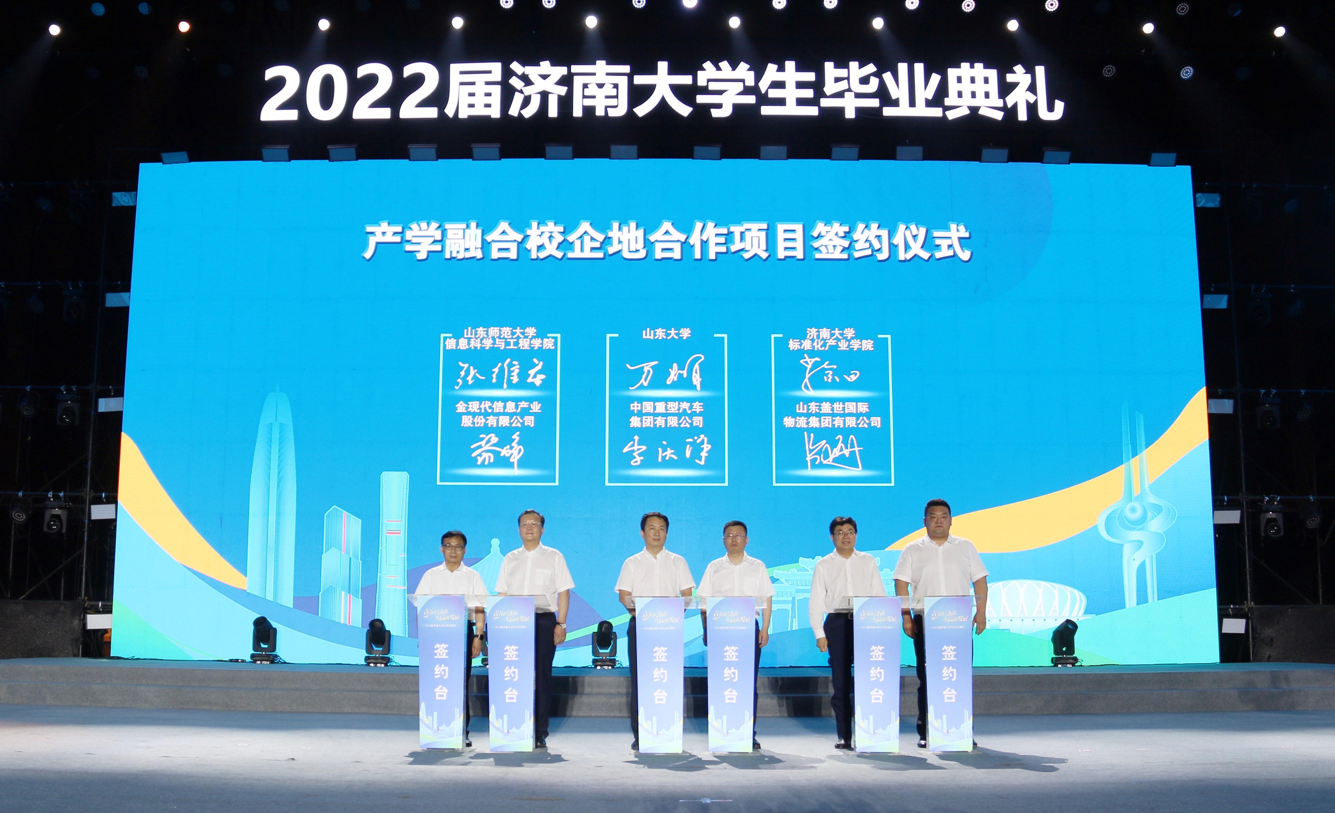 标准化产业av解说中文字幕 院长葛金田应邀出席毕业典礼,并在“黄河流域高质量发展校企地青年创新平台项目签约”环节,代表av解说中文字幕 与山东盖世国际物流集团进行产学融合校企地合作项目签约。