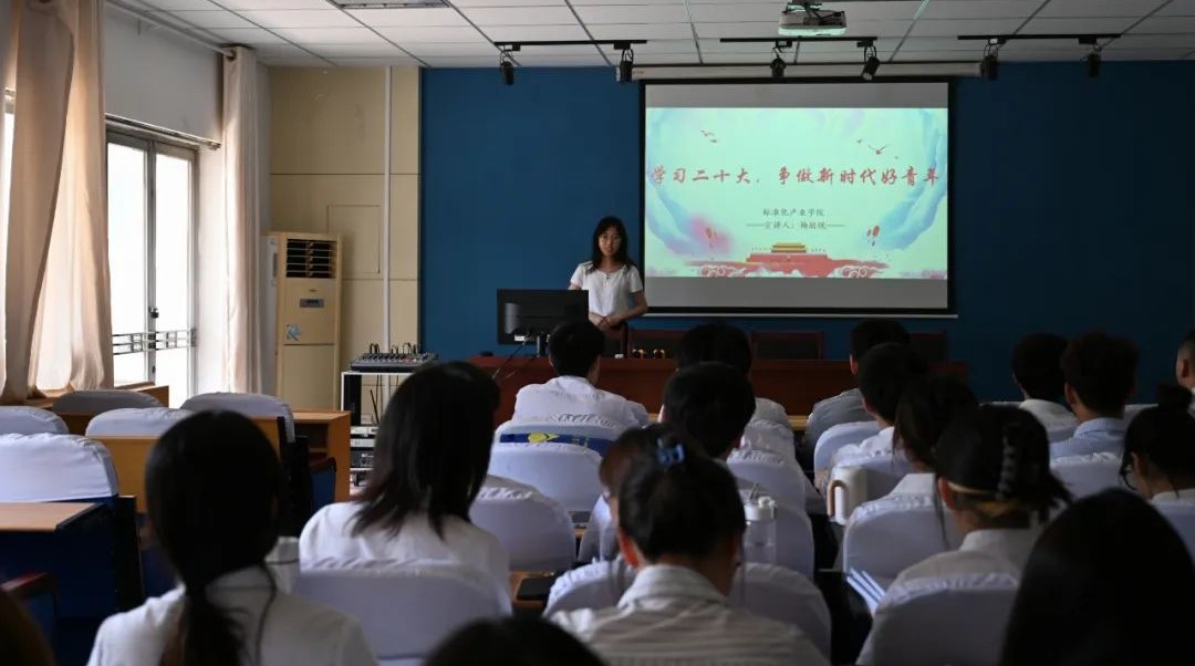 学校大学生思政宣讲团成员杨欣悦同学为毕业生带来了一场 “学习二十大,争做新时代好青年”的主题宣讲,致敬英雄杨根思,回顾新中国发展的艰辛路程。宣讲让同学们燃起了投身于新时代发展的激情,同学们纷纷表示要向先烈功勋们学习,用自己的所学,为中华民族伟大复兴中国梦的实现贡献力量。