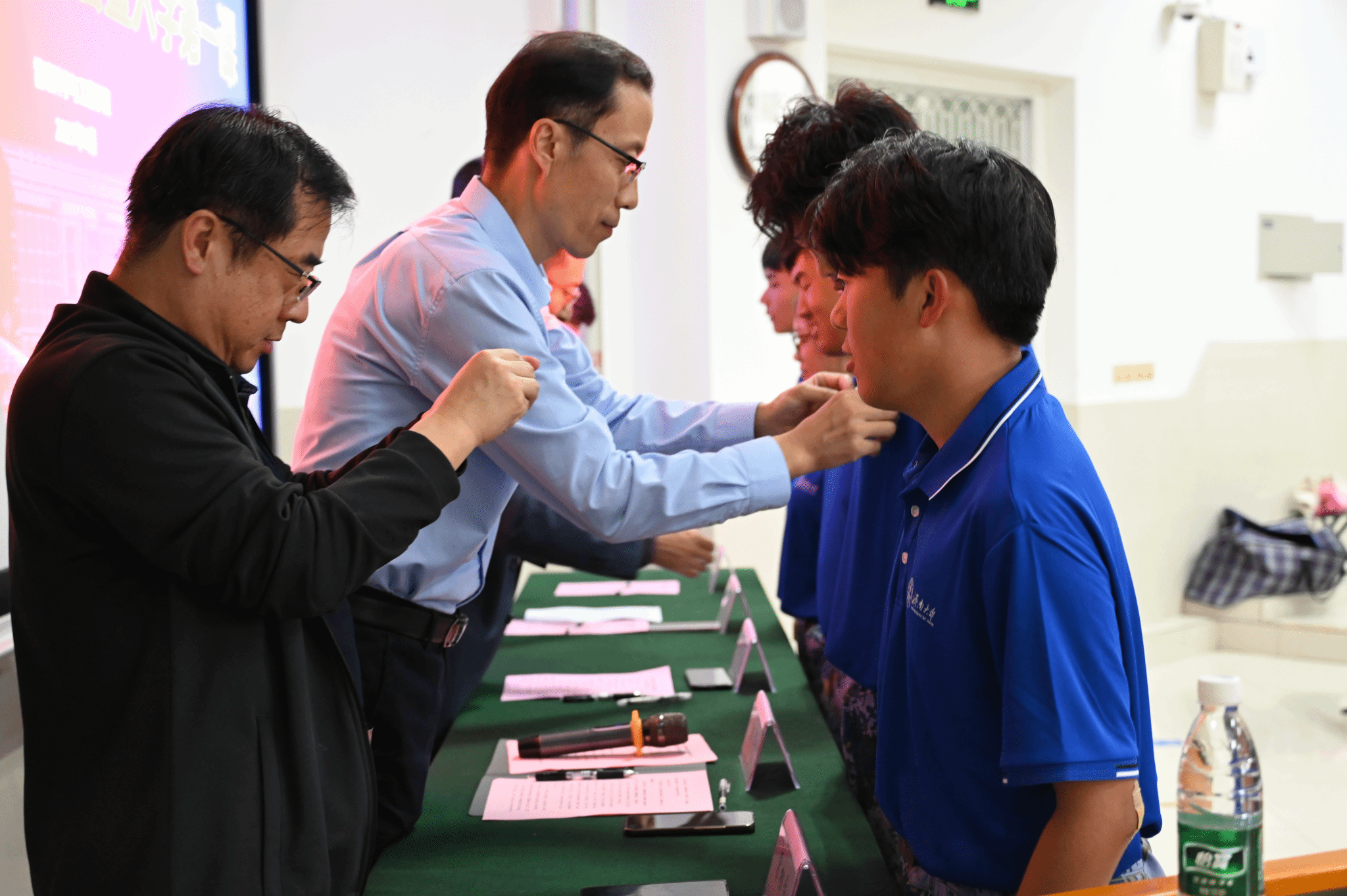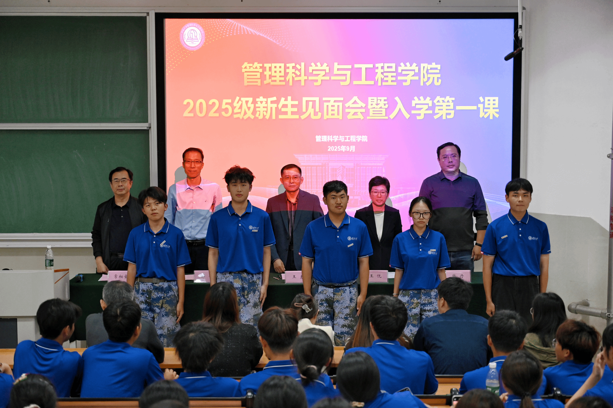 见面会在庄严的国歌声中开始。院长助理常相全教授对av解说中文字幕 各专业情况进行介绍,从学科布局、培养模式、专业优势等方面进行了系统讲解,让新生对av解说中文字幕 专业有了直观且深入的认识。在校生代表信管 2201 班李惠泽结合自身大学学习生活经历,从学业规划、校园活动、能力提升等方面进行经验分享。新生代表应管 2502 班原浩轩表达了对大学生活的期待与自身的规划愿景,展现出新生群体的蓬勃朝气。活动中,av解说中文字幕 领导集体为新生代表佩戴校徽。