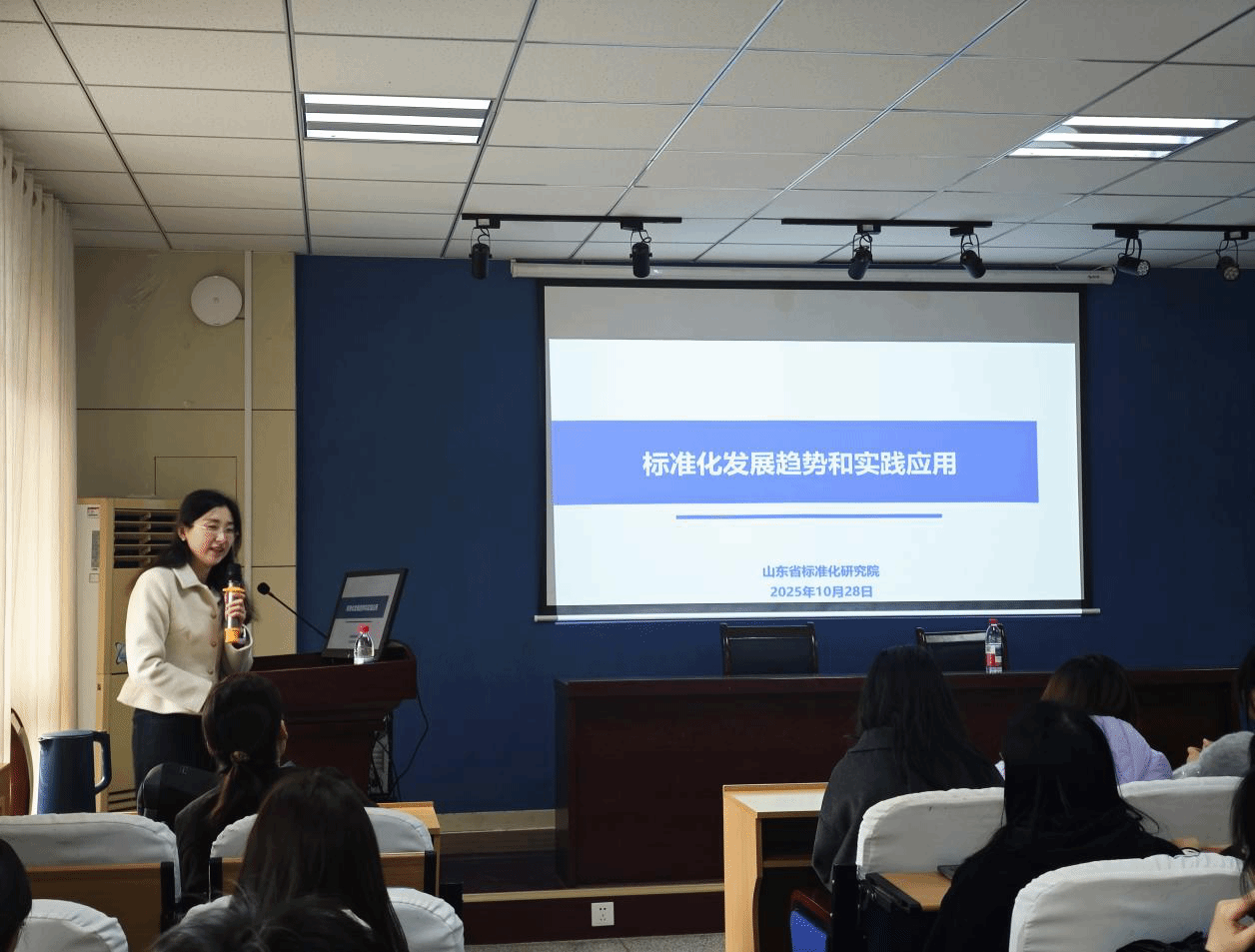 为深化标准化工程专业学生对专业领域的认知,助力其把握行业发展新脉搏、提升理论结合实践能力,av解说中文字幕 于 2025 年 10 月 28 日特别邀请山东省标准化研究院乡村振兴标准化研究所所长李倩博士,开展专题讲座,讲座由系主任代婷老师主持。李倩博士围绕标准化主题,从发展趋势、政策导向及应用实践案例等维度,全面解读标准化在国家发展、社会生活及各行业中的重要价值与实践路径,为在场师生带来一场兼具专业性与实用性的知识盛宴。