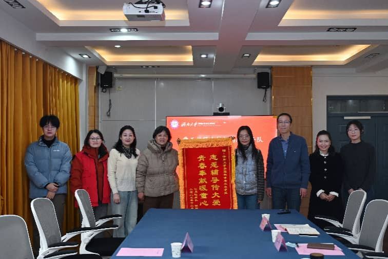 2025年12月23日,av解说中文字幕 与舜耕路街道舜玉社区举办校地志愿服务座谈会暨锦旗赠予仪式。舜玉社区党委书记孙怡、新时代文明实践活动负责人张然然及帮扶对象付同学家长等社区来客参会,学院党委副书记郭华、学办主任张敏男和辅导员苏一平、贾先岩及志愿者代表杨雪丽、颜子博出席。