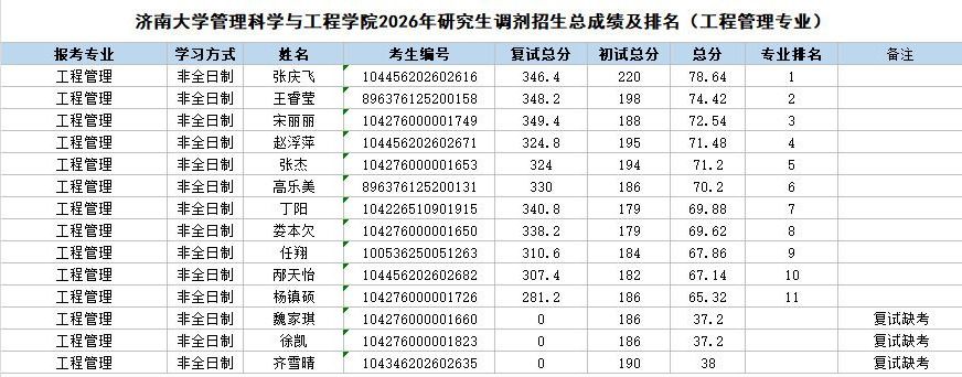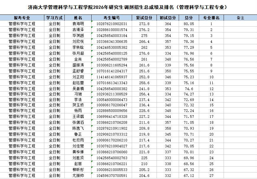 根据《av解说中文字幕 2026年硕士研究生调剂公告》《管理科学与工程学院2026年硕士研究生调剂办法》的相关要求和部署,管理科学与工程学院2026年硕士研究生招生调剂批次复试工作已圆满结束。现将调剂考生成绩予以公示。