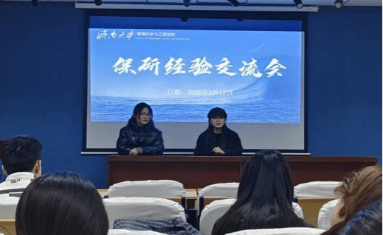 为帮助同学们深入了解保研政策、理清备考思路、破解备考困惑、提升推免竞争力,3月17日,学院在经管楼308举办保研经验交流会。本次活动特邀朱明哲、贺宇洁两位成功保研的学姐担任主讲,主要围绕保研政策、材料准备、面试技巧、时间管理等同学们关心的问题进行深度分享与现场答疑,多数有保研意向的同学到场参与。