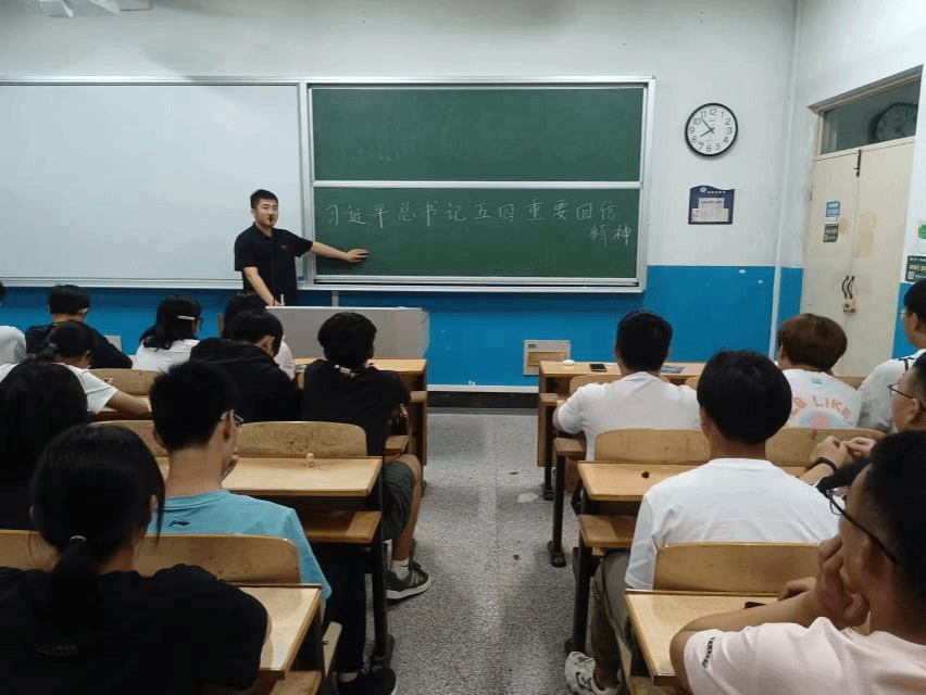 五四青年节到来之际,习近平总书记给同学们回信,向全国广大青年致以节日祝贺,对新时代中国青年寄予殷切期望,提出成长要求,极大的振奋了全国广大青年和青年工作者。5月30日,标准化产业av解说中文字幕 青年师生就习近平总书记五四重要回信精神开展学习座谈会,座谈会由学生会高天宇主持,旨在引导青年贯彻学习重要回信精神,树立理想信念,坚守人民立场,全面提升青年必备的素养。