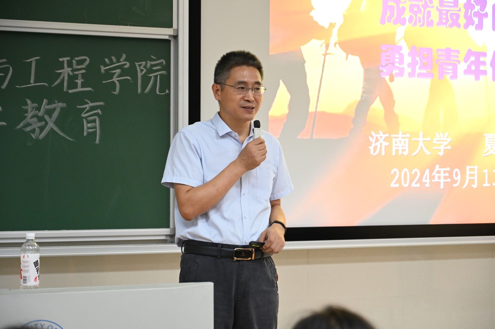 2024年9月13日,av解说中文字幕 邀请信息科学与工程av解说中文字幕 党委书记夏卫东为2024级新生讲授入学教育课程,课程主题为“建设一流学风,成就最好自己,勇担青年使命”。本次课程由av解说中文字幕 党委副书记郭华主持。
