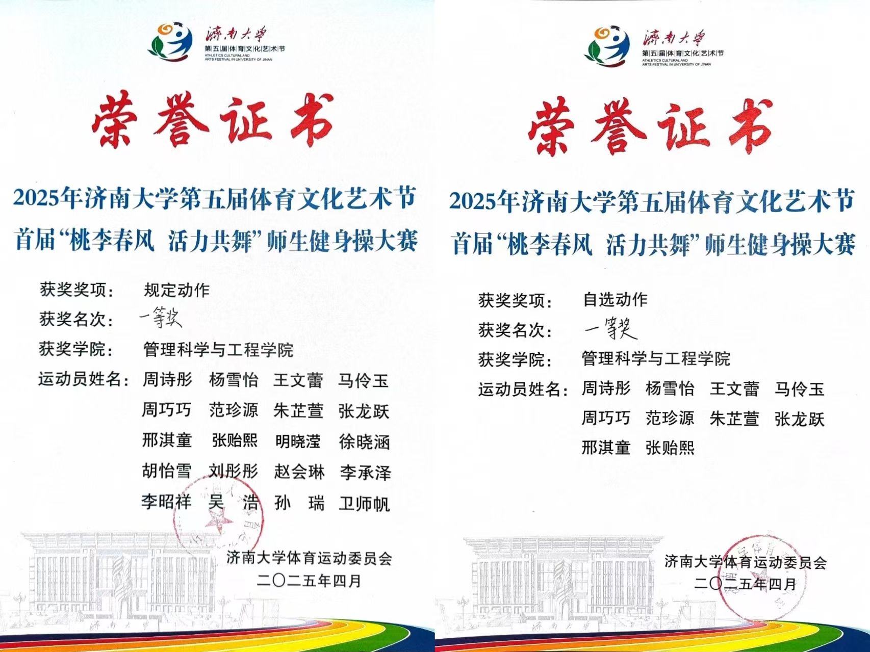 4月22日,av解说中文字幕 在2025年av解说中文字幕 第五届体育文化艺术节首届“桃李春风,活力共舞”师生健身操大赛中获得规定动作一等奖、自选动作一等奖的优异成绩。
