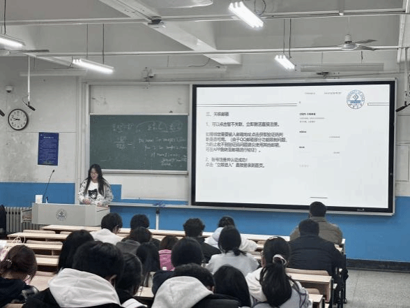 讲解过程中,学生会办公室的同学围绕“注册账号”“绑定手机号”“设置密码”“关联邮箱”“登录方式”等关键环节,逐一展开详细说明。他们结合PPT详细地展示了每一步操作流程,并针对常见问题如“学号与姓名不匹配”“手机号无法接收验证码”“密码设置规范”等提供了实用解决方案。