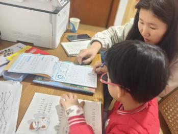 暖黄的台灯下,书桌前的场景简单却温馨:小朋友握着笔在拼音本上认真描摹;一旁的志愿者微微俯身,指尖轻点课本上的声母表,用轻柔的声音纠正发音,遇到孩子难懂的知识点,就放慢语速反复讲解。练数学题时,志愿者会握着孩子的手示范解题步骤,弯腰俯身的弧度里,满是耐心与细致。